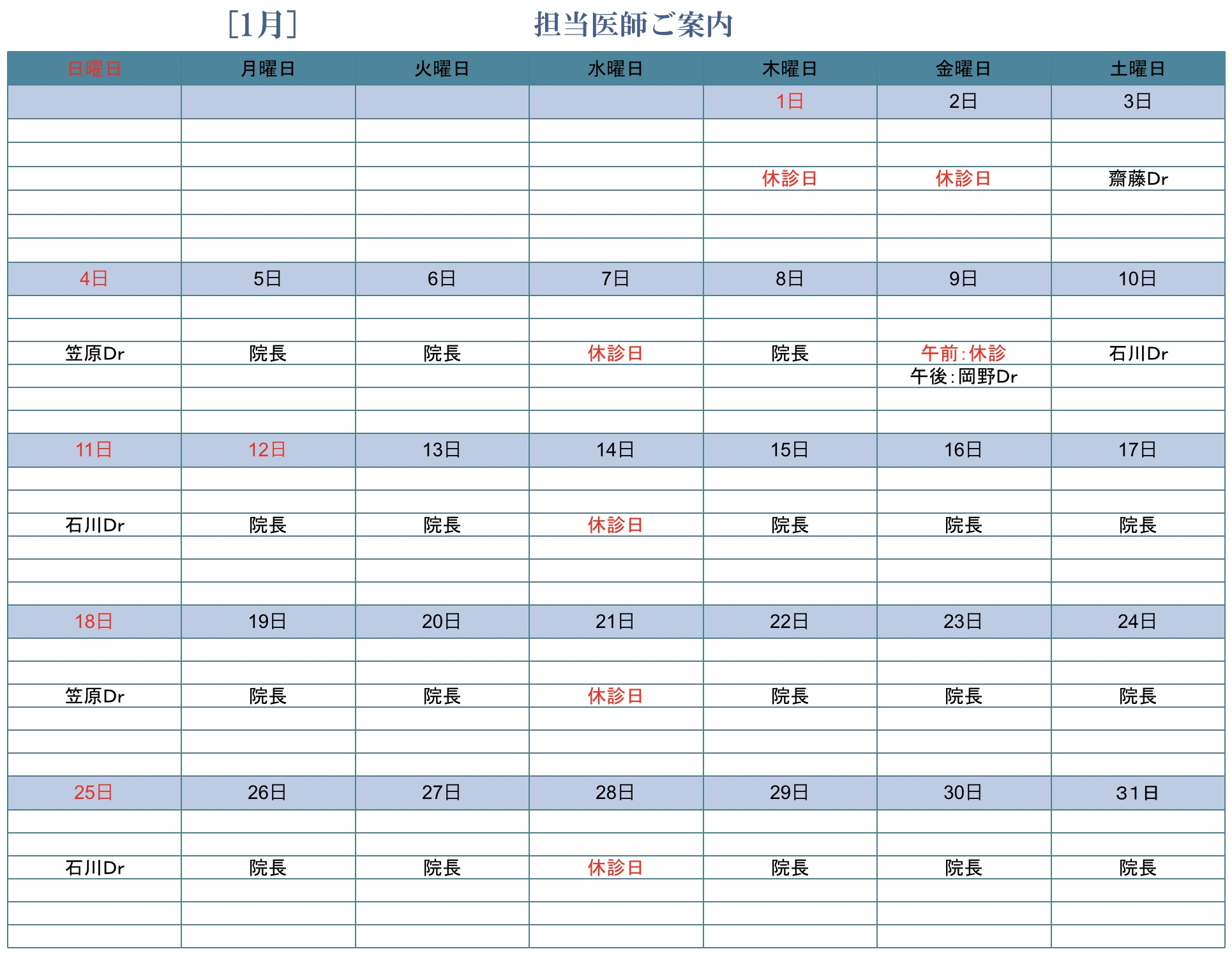 年末年始のお休みは12月31日、1月1~2日となります。 年内は12月30日まで通常診療、年始は1月3日から診療を開始しております。
