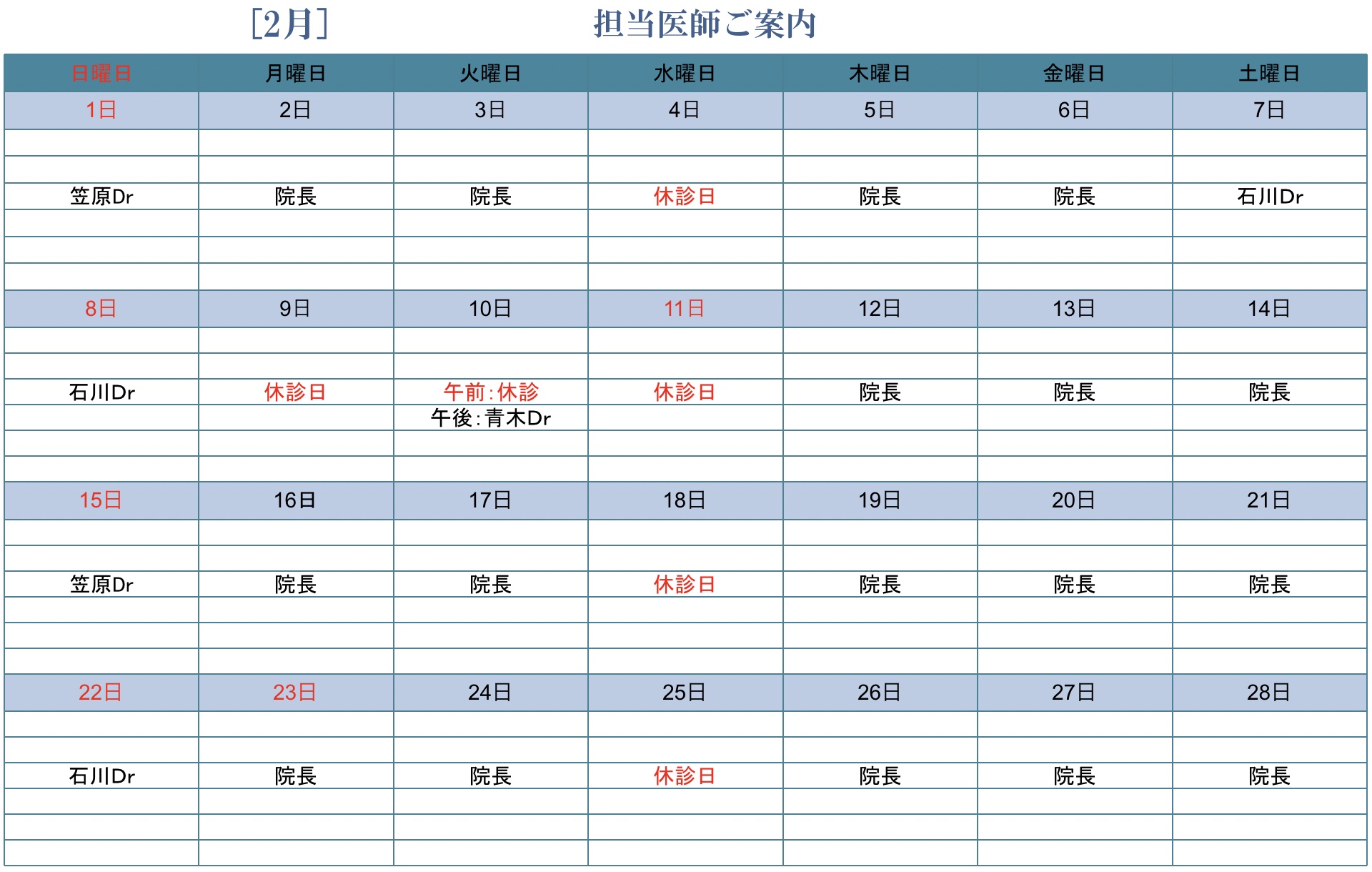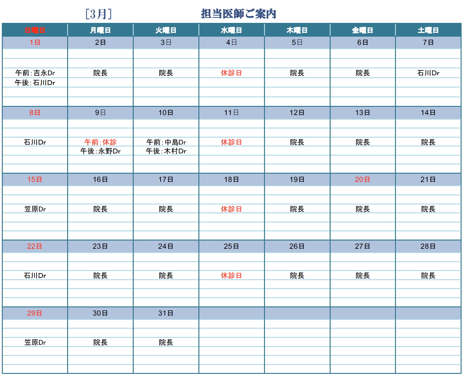 受付時間の変更・臨時休診等の有無をご確認下さい。